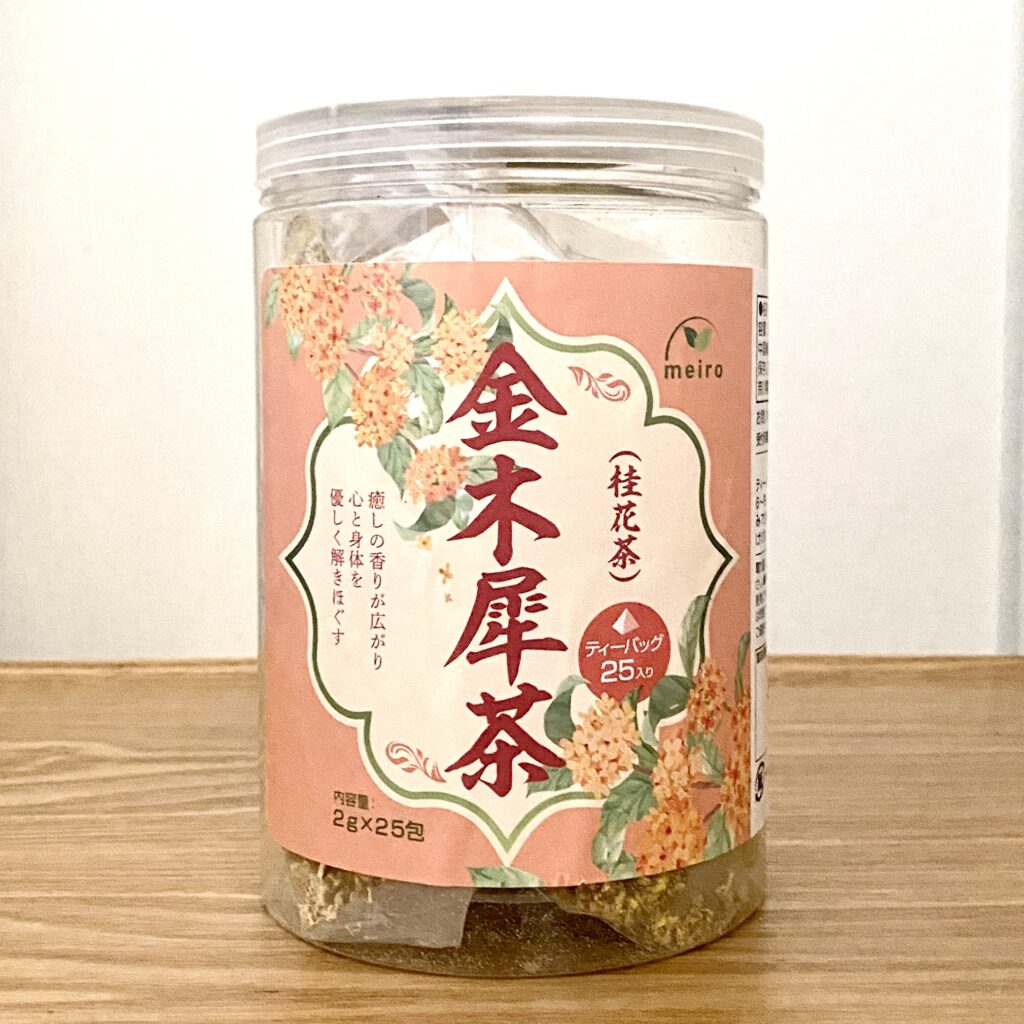 お茶として販売されているもの(写真)を使用しています。茶と名前がついていますが、実際は乾燥にかけた金木犀の花で、お茶の成分は含まれません。凝縮した金木犀の香りがします。ティーバッグ1個あたり2gの金木犀です。